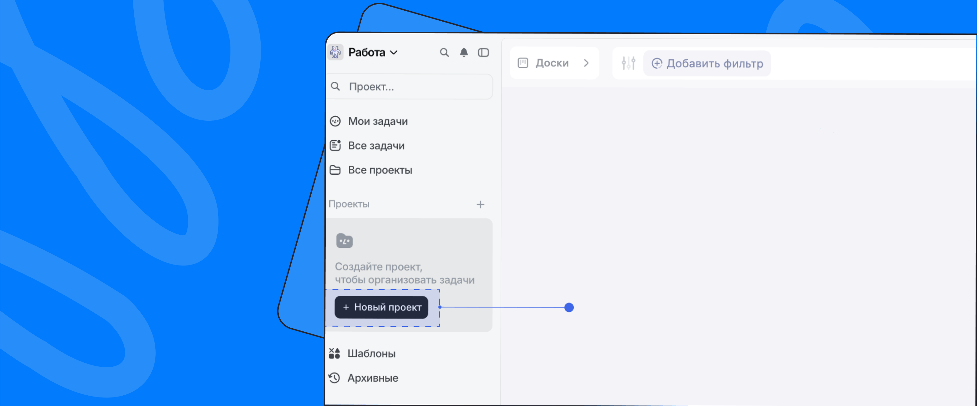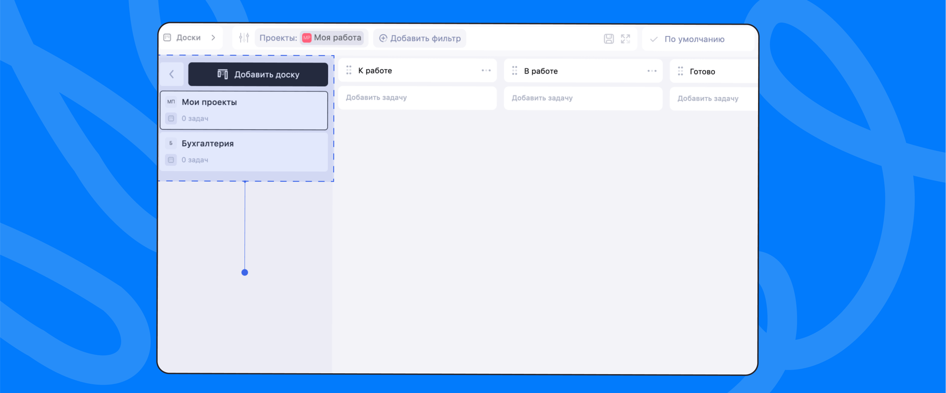 Дальше создайте Доски — они помогут визуализировать процессы внутри одного проекта. Наши доски будут называться «Мои проекты» и «Бухгалтерия».