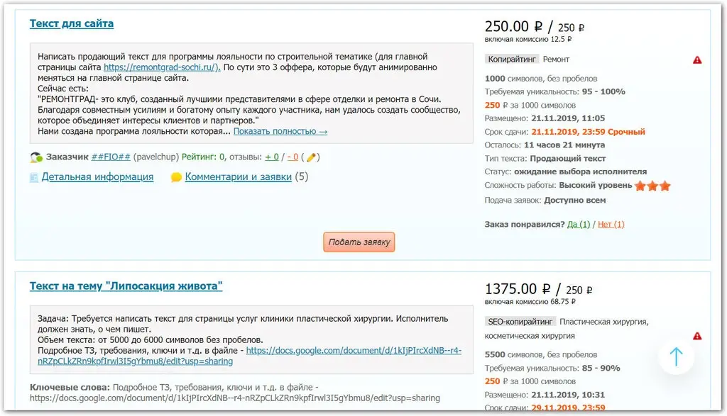Часто заказчики ищут копирайтеров на конкретные задачи, например, написание продающего или информационного текста: